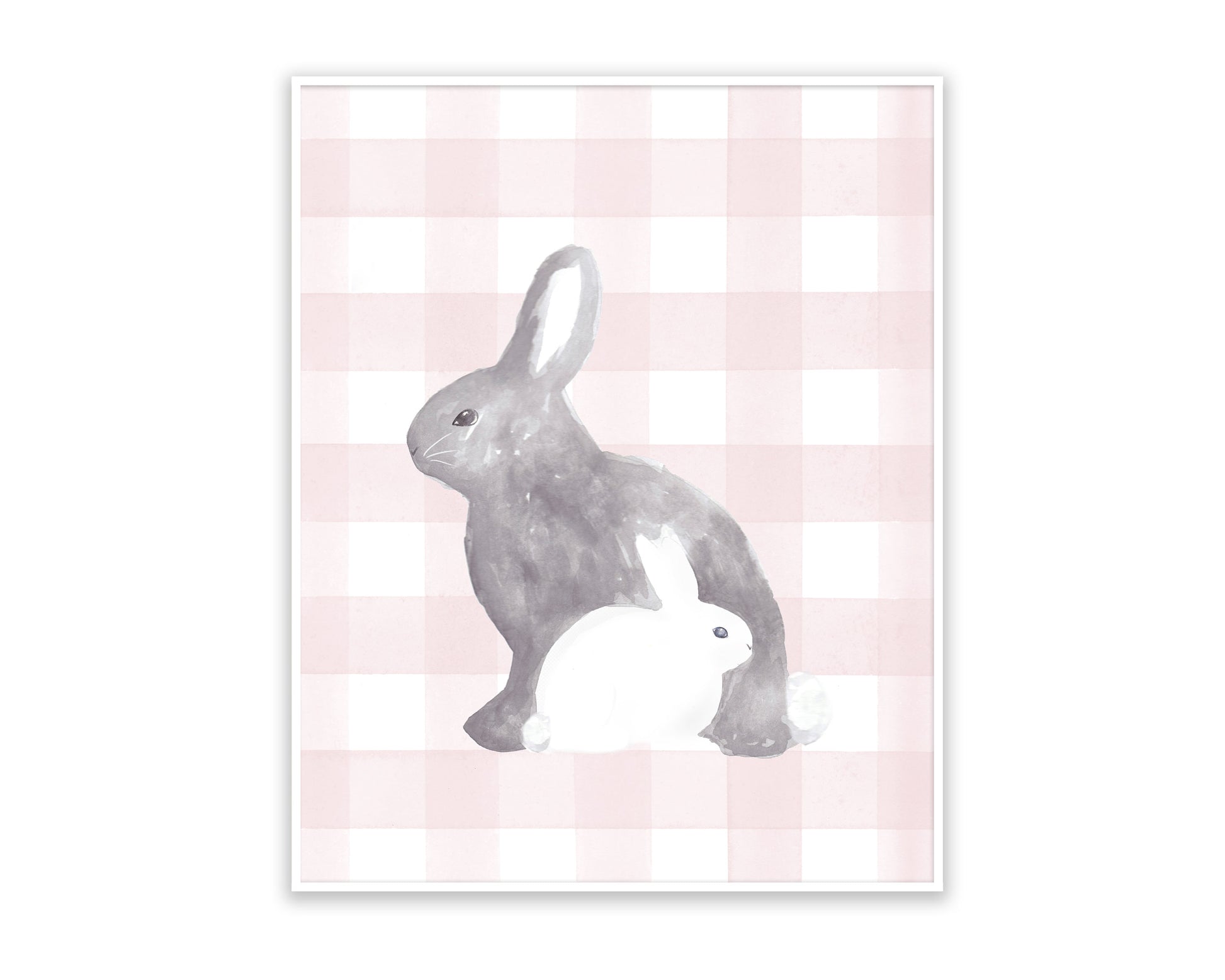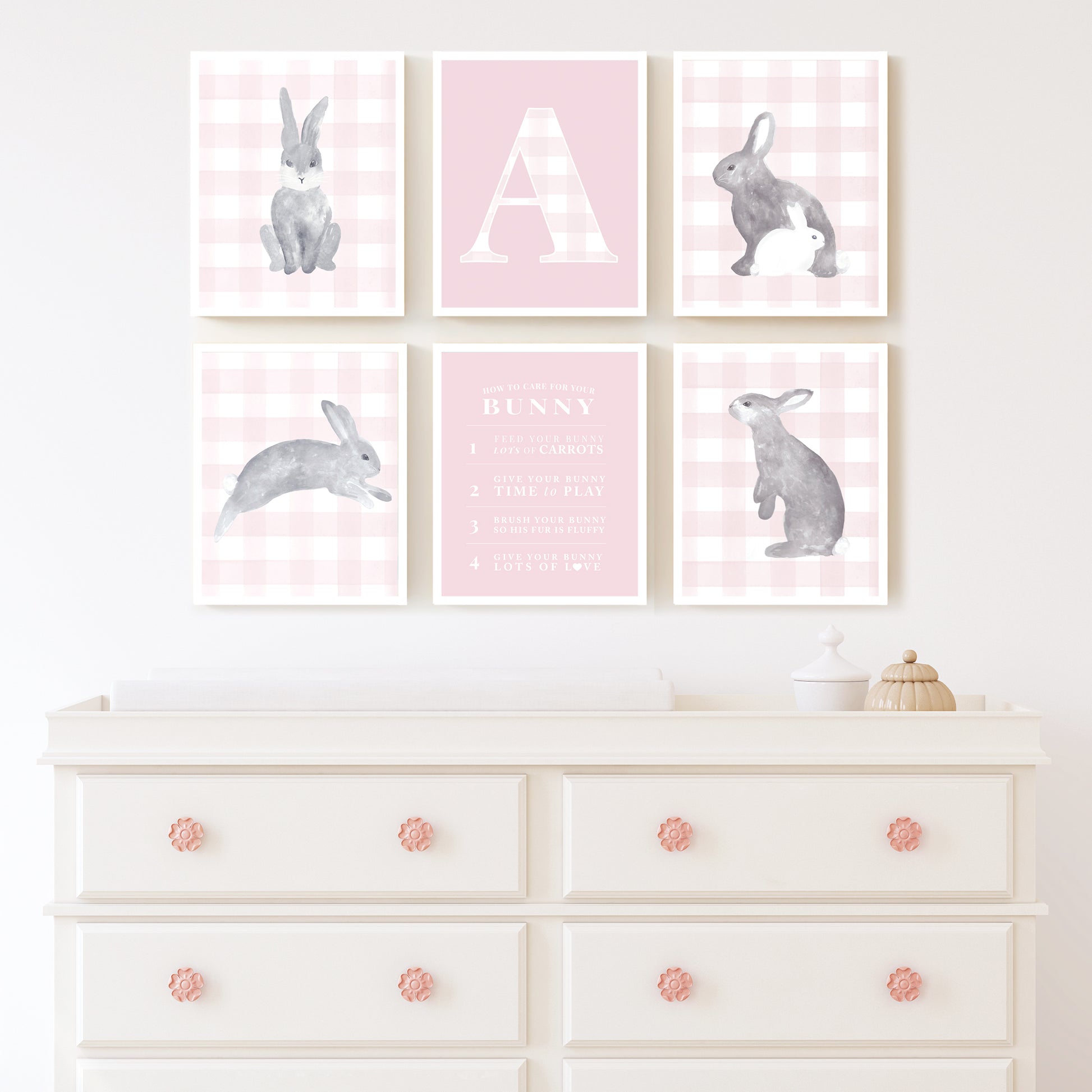 Gingham Pink Bunny Nursery Art/Decor 8"x10" 6 Print Bundle