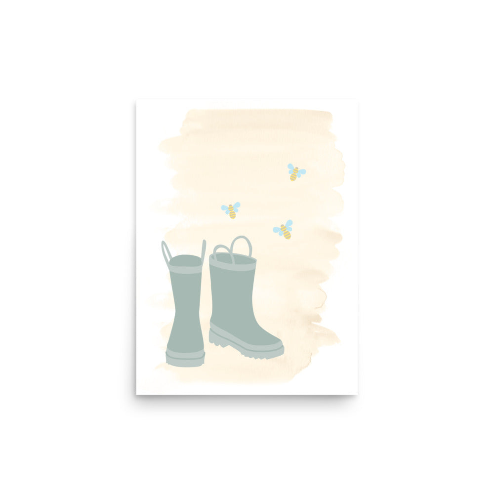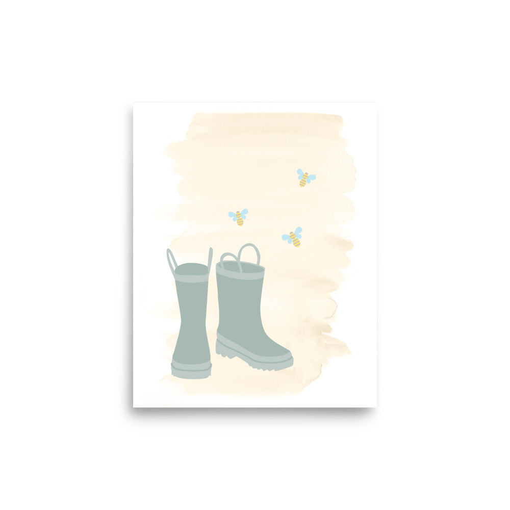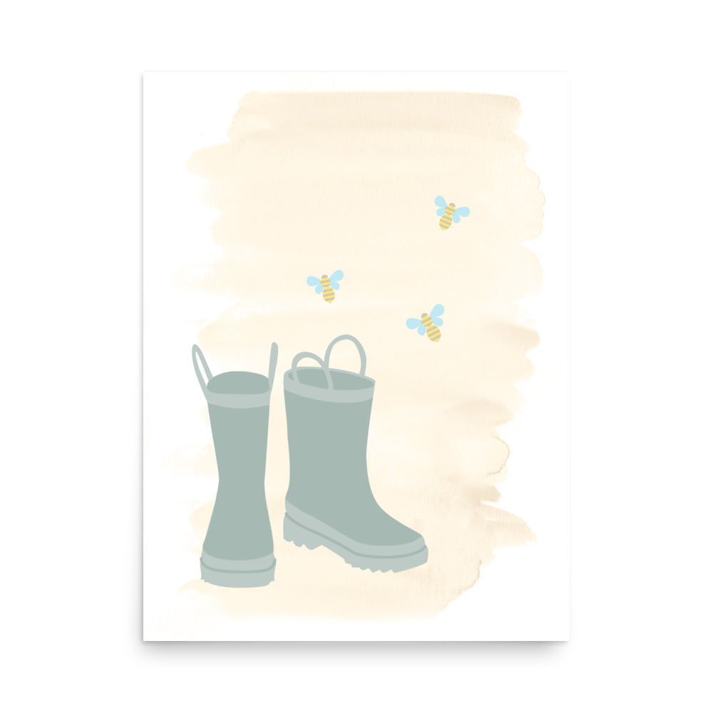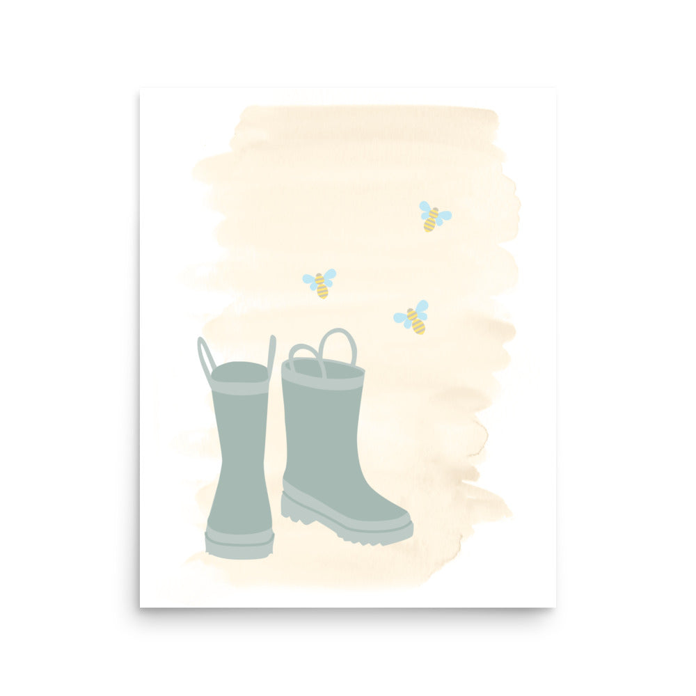These busy honey bees are buzzing during the golden hours of summer. The soft hues of this print match well with warm oak decor or bright white frames.