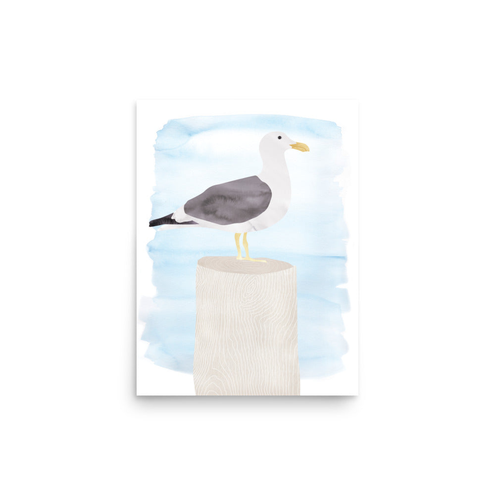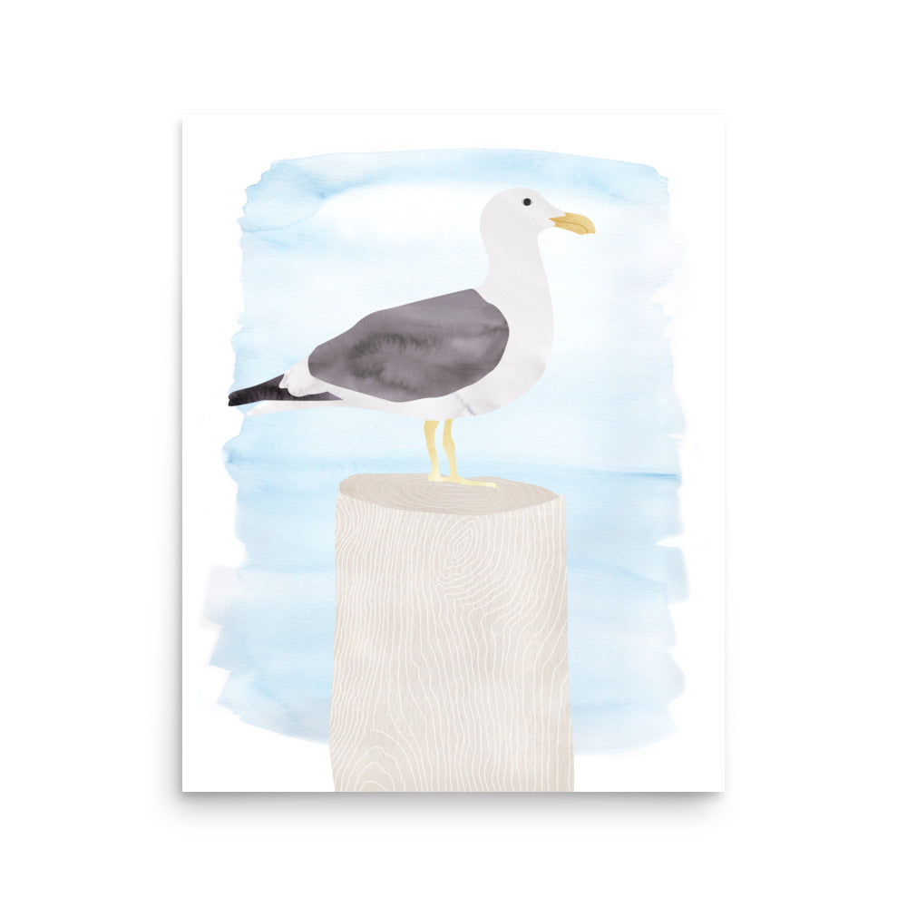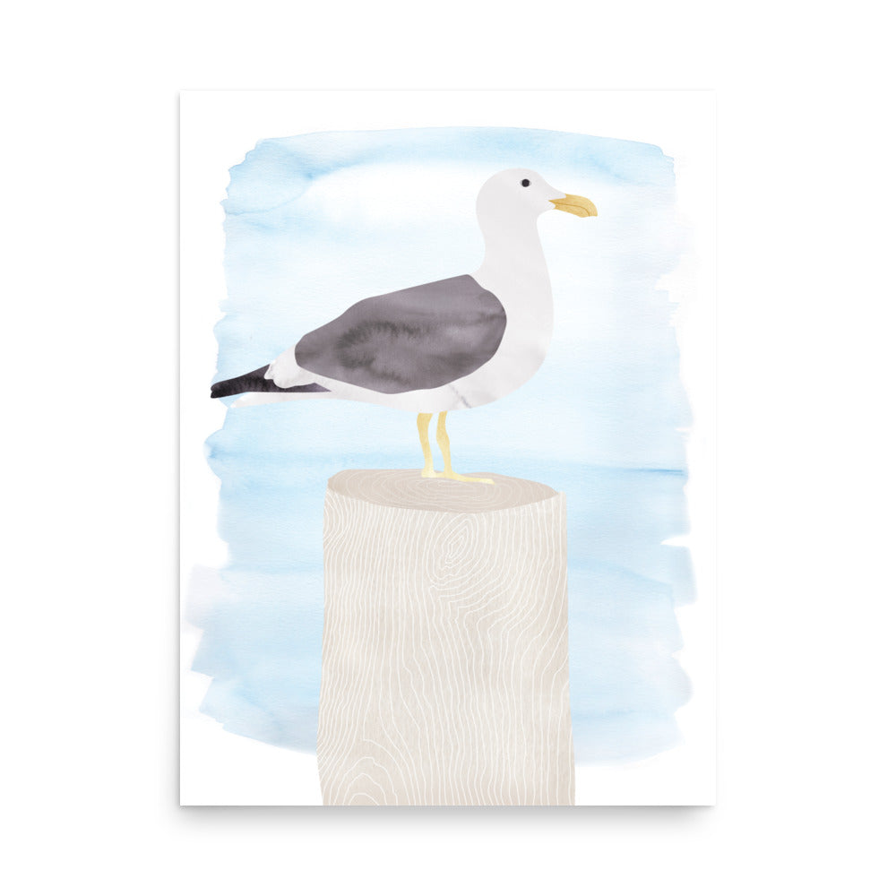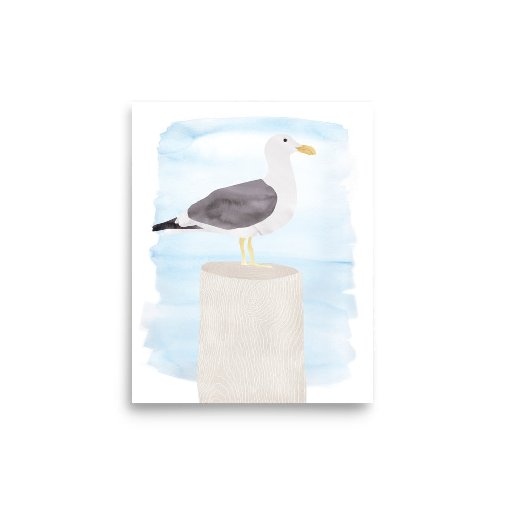 This seagull seated majestically on the dock looking out to the horizon is looking for its next catch. This print will add the perfect nautical touch to your nursery, kid’s room or playroom. It pairs perfectly with grey, blue, light or dark wood frames, furniture and décor.